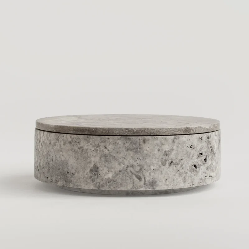 Crafted from carefully selected from Turkish travertine by Kiwano Concept, each piece is uniquely veined by nature. Both functional and sculptural, it adds a sophisticated touch to dining tables, coffee tables or consoles.