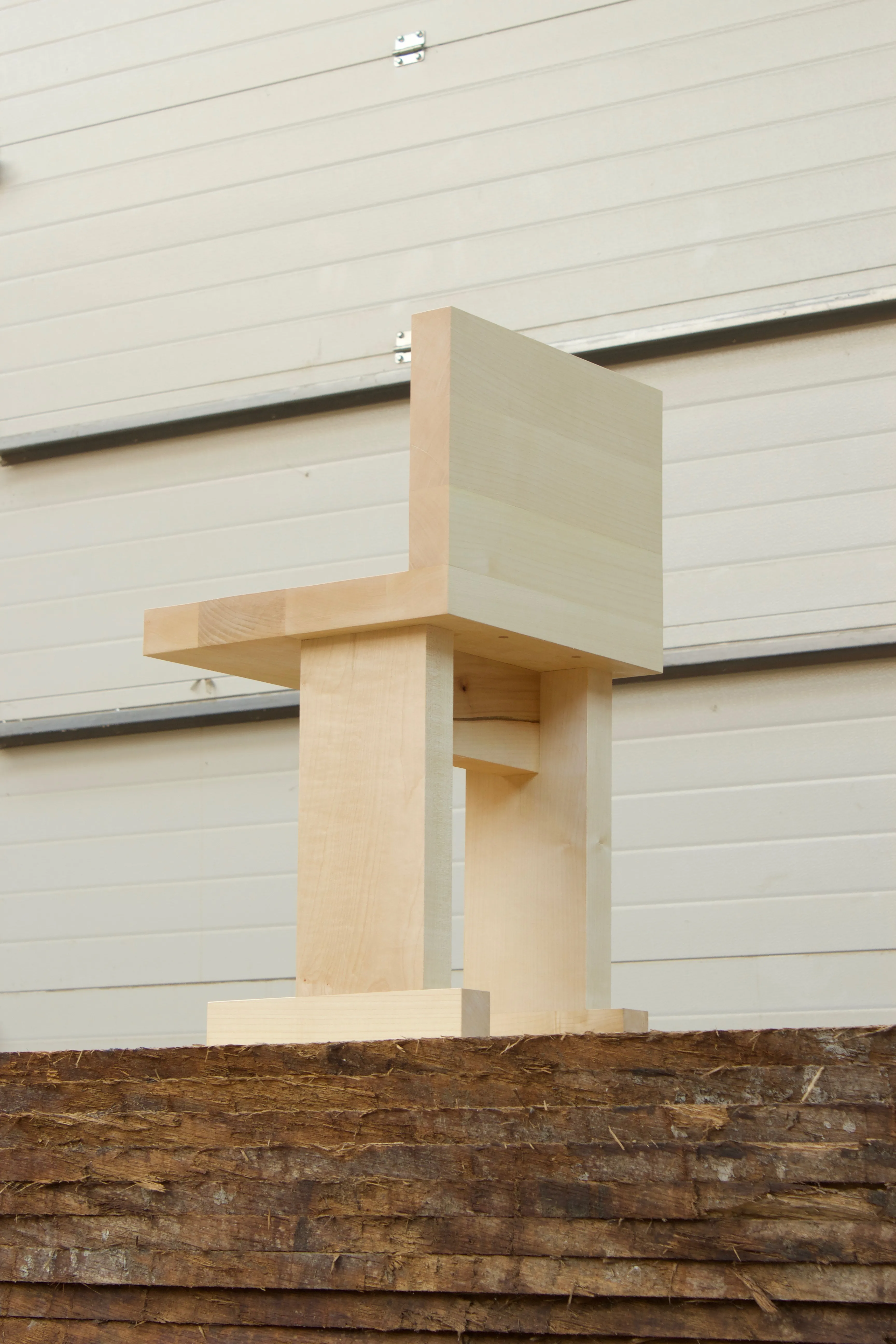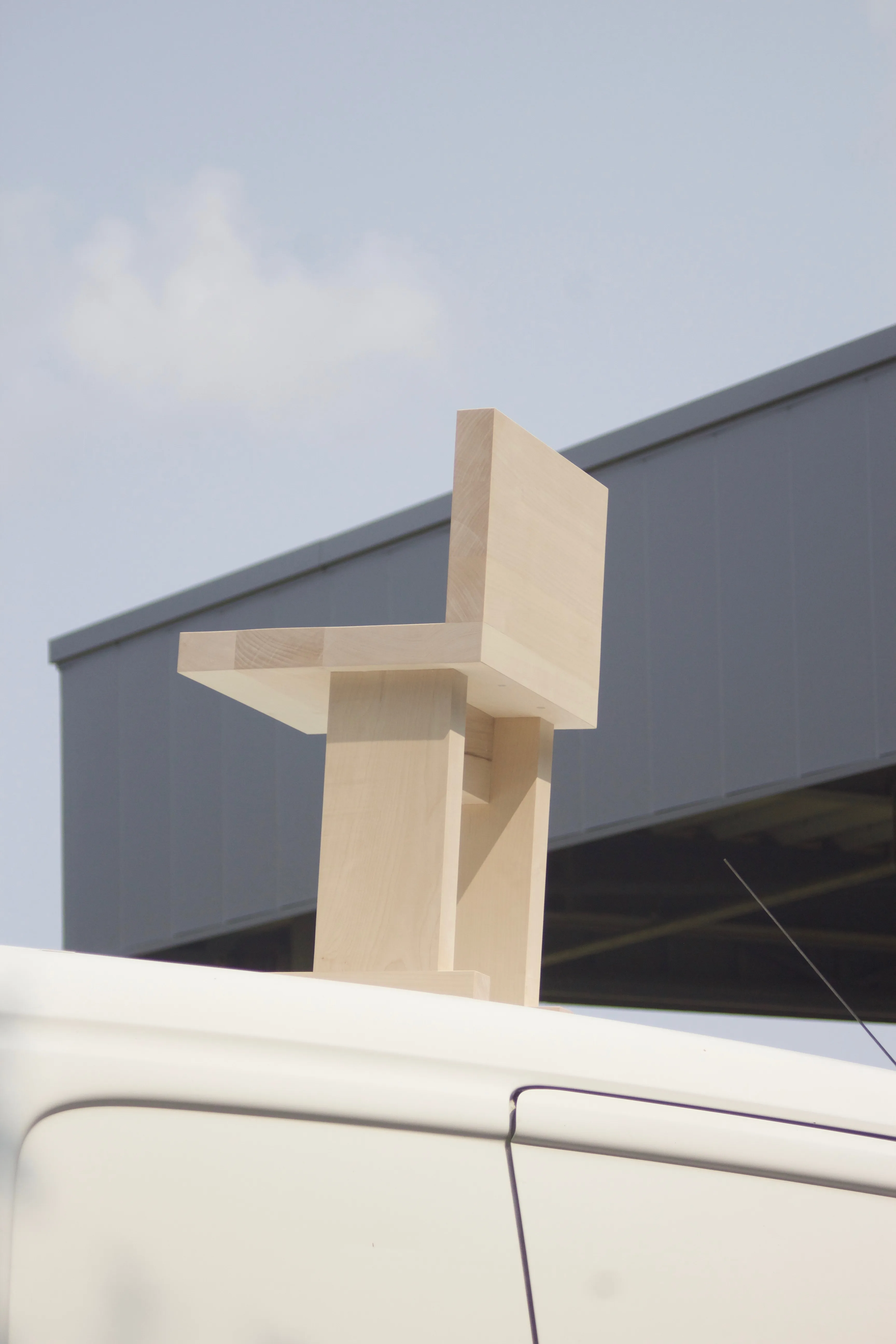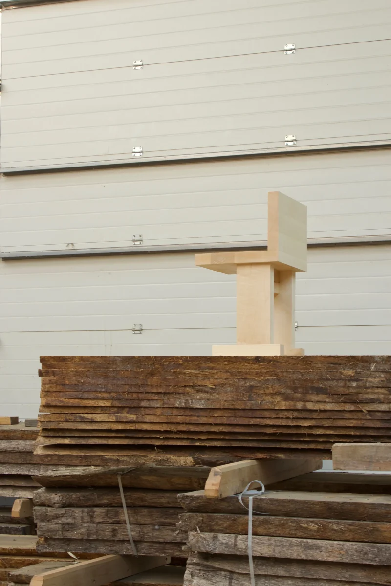 Beyond his studio, Vital photographs his pieces in various settings—landscapes, village squares, or near the sawmill—offering new perspectives on his work. For him, the process of making, the time spent reflecting, and the interaction with space are inseparable from the object itself.