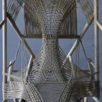 The paper cord is woven as a tertiary curved surface, picking up the frame assembled with thin members.