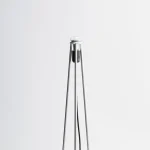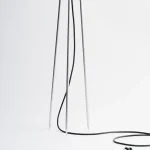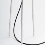 At its core, a CNC-milled ring seamlessly connects the hand-milled legs at precise angles, ensuring both structural stability and visual coherence. The legs taper to slightly rounded points, enhancing the piece’s sculptural presence while maintaining functional integrity. Crowning the structure, a smart LED light bulb sits atop, providing illumination that complements the lamp’s contemporary design.