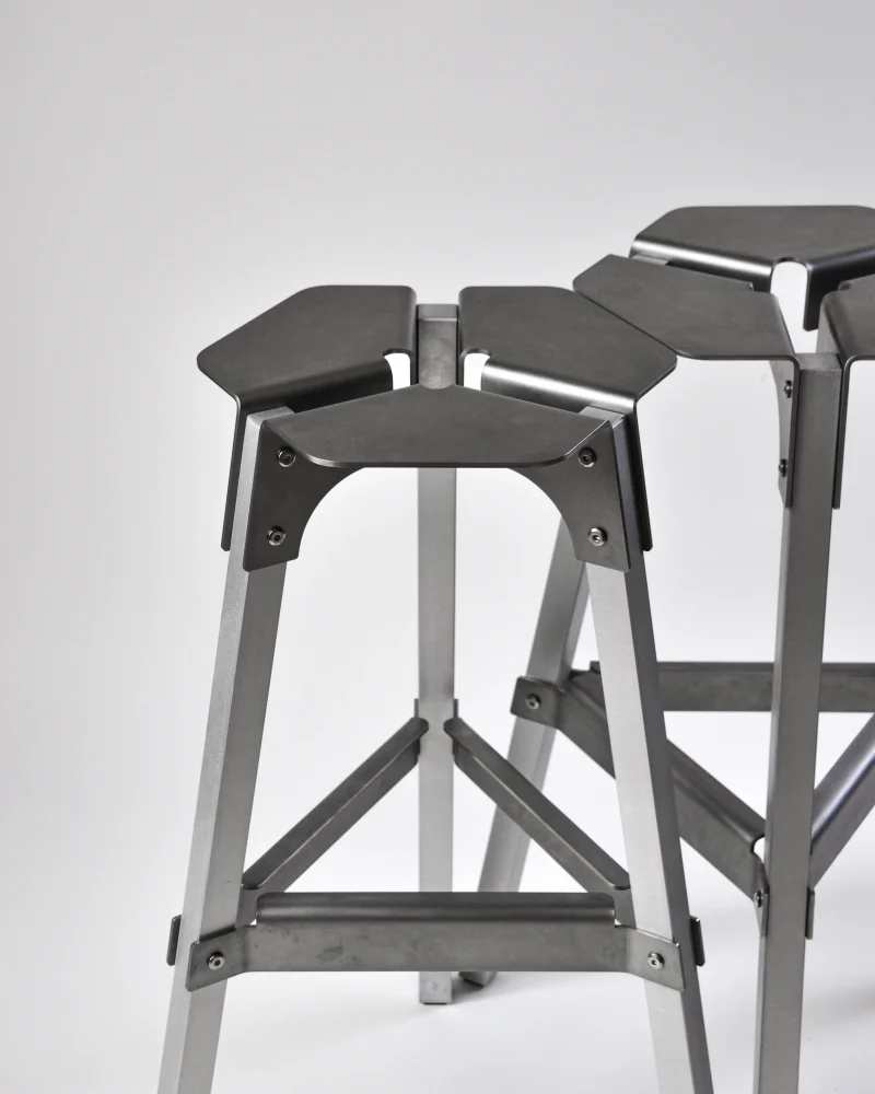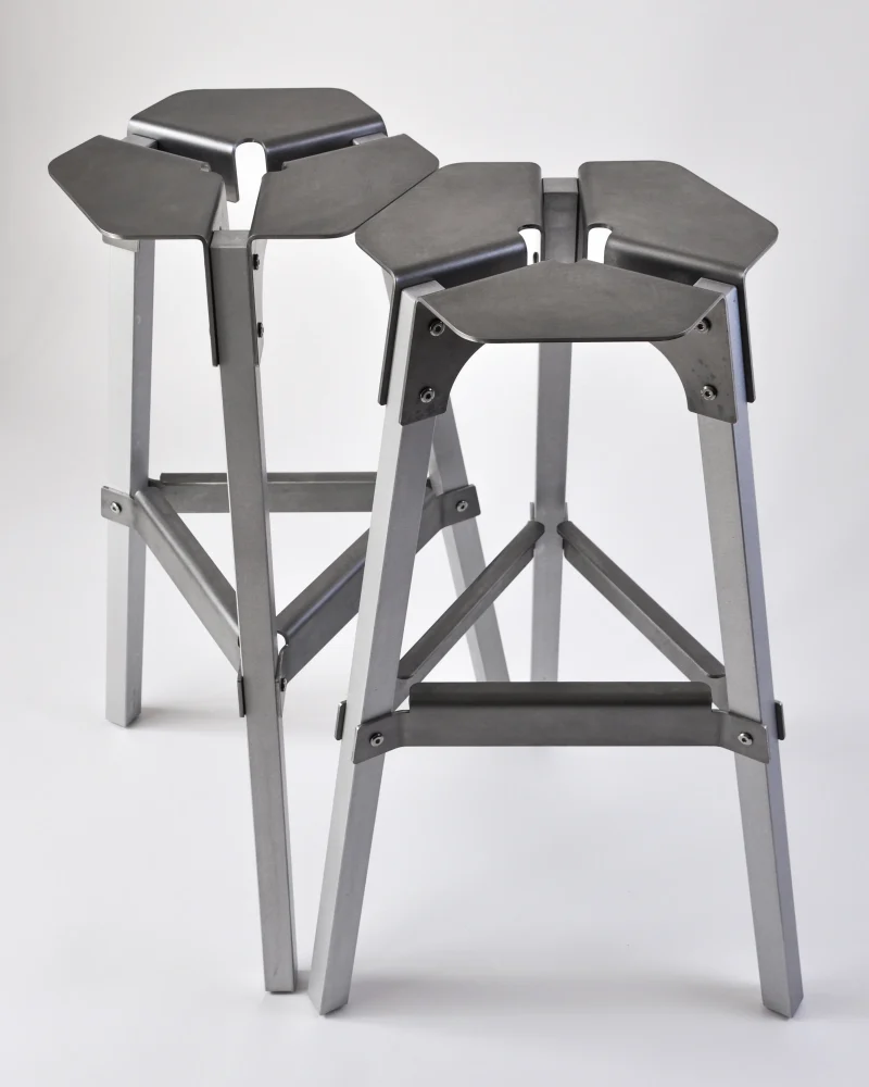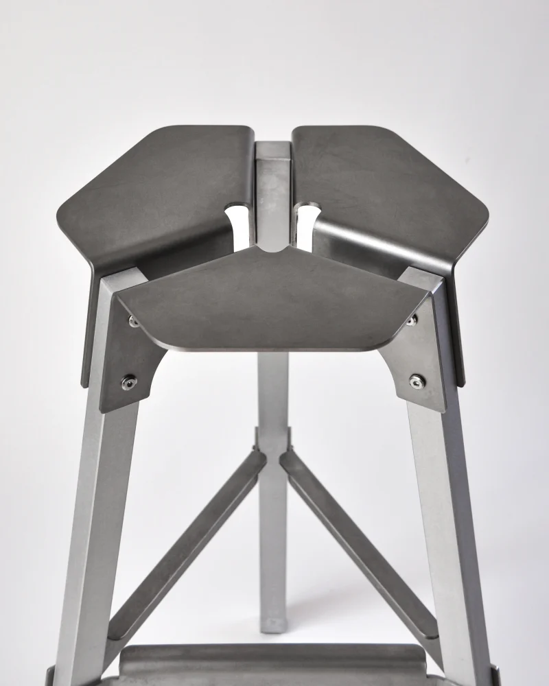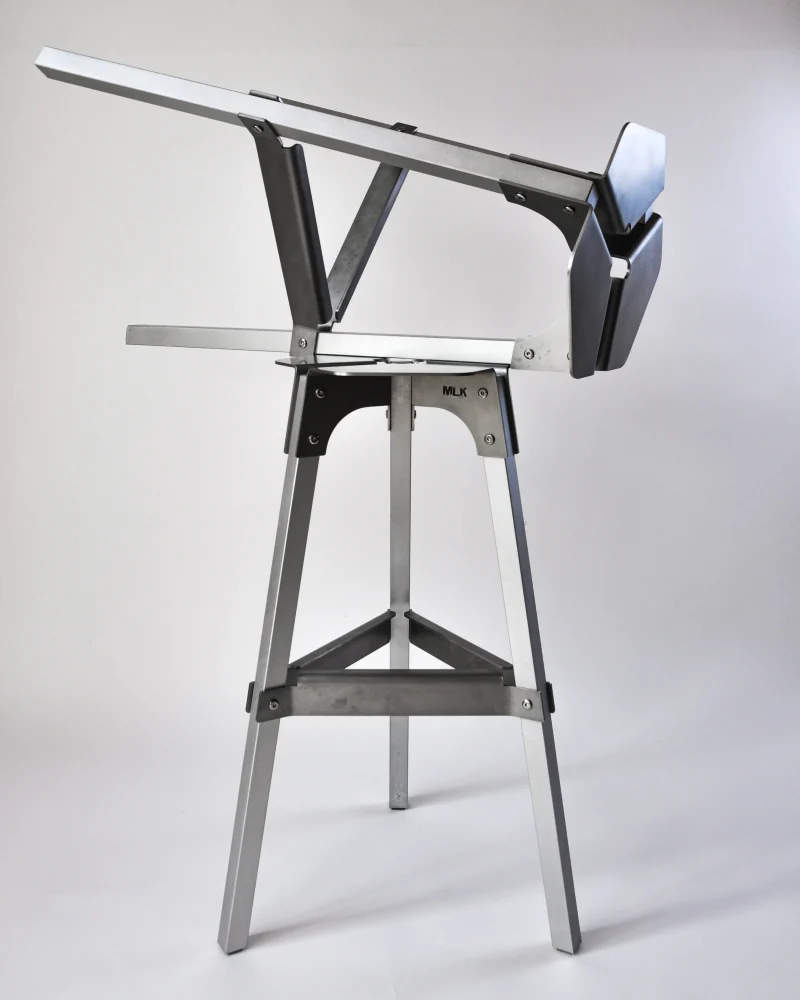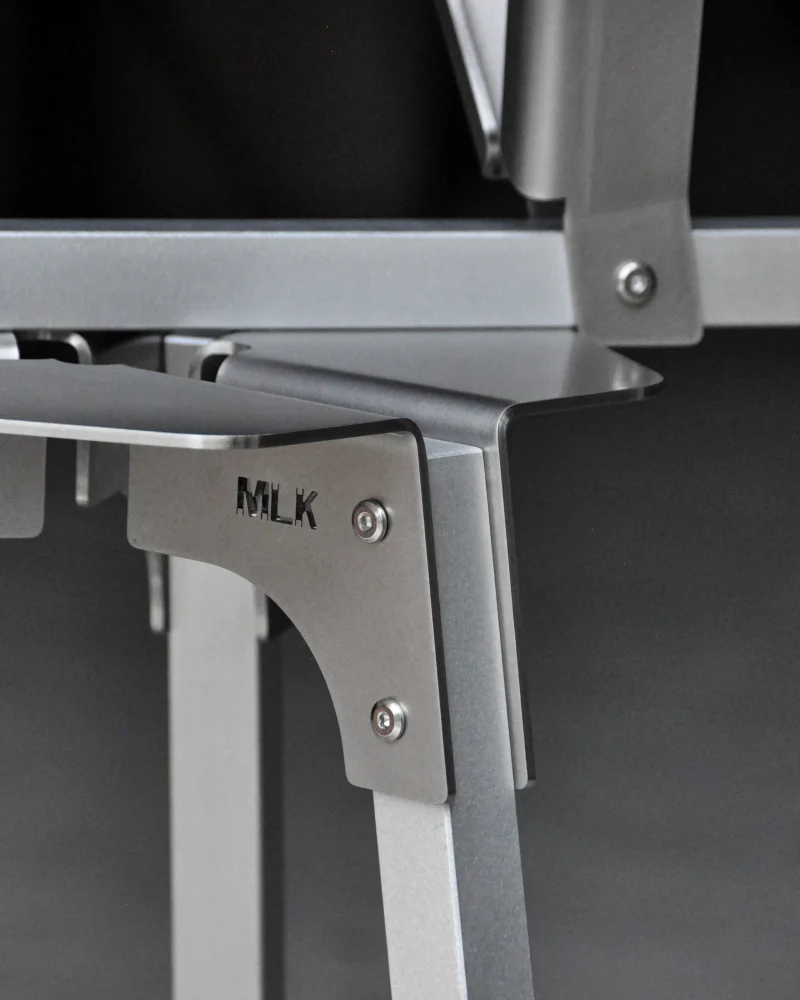 The design of this lamp gave rise to other creations as well as the 'sandwich design concept'. The insertion of assembly elements between two sheets of metal, allowing a dismountable design, became MLK Furniture's signature.
