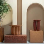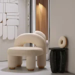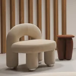 The Trio Accent Table features a small, asymmetrical tabletop paired with legs in an ethnic style, making it a striking addition to any room. Its minimalist design is enhanced with a terrazzo pattern or bright ceramic coating, offering both a modern aesthetic and a cultural touch. This table serves as a versatile accent piece, perfect for elevating any interior with its unique blend of form and function.