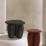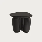 This coffee table features an asymmetrical tabletop and legs inspired by ethnic design, creating a unique and eye-catching statement piece. The minimalist form is accentuated by a terrazzo pattern or vibrant ceramic coating, adding texture and color to the design.