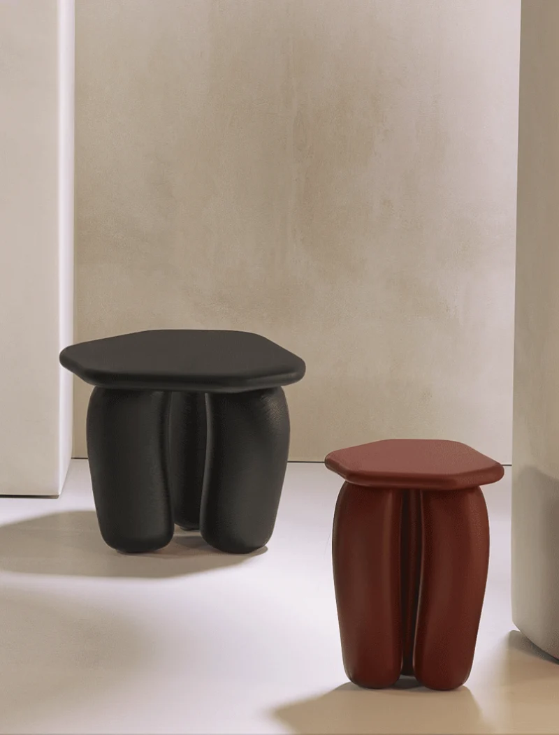 This coffee table features an asymmetrical tabletop and legs inspired by ethnic design, creating a unique and eye-catching statement piece. The minimalist form is accentuated by a terrazzo pattern or vibrant ceramic coating, adding texture and color to the design.