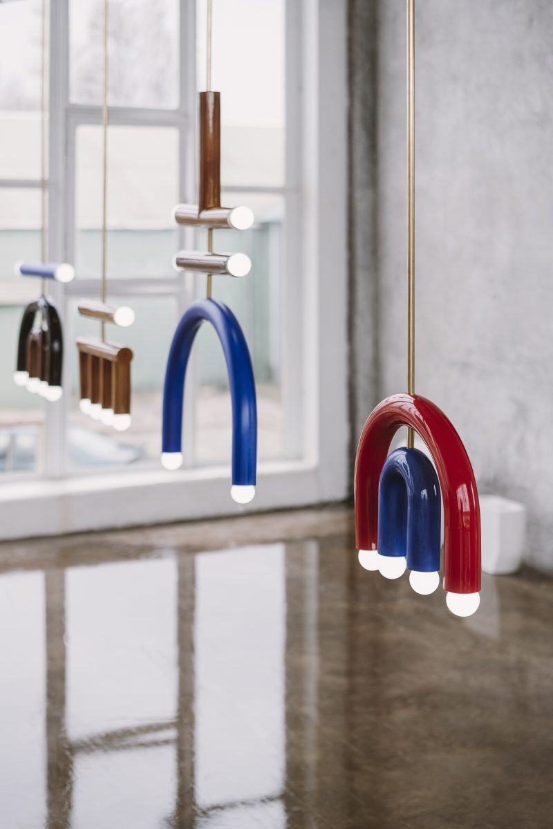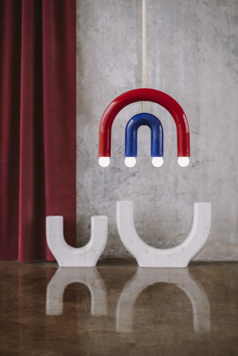 The hand crafted process of glazing ceramics gives the collection a truly unique character. It is finished with brass elements.
