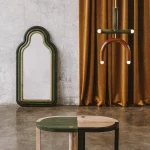 The hand crafted process of glazing ceramics gives the collection a truly unique character. It is finished with brass elements.