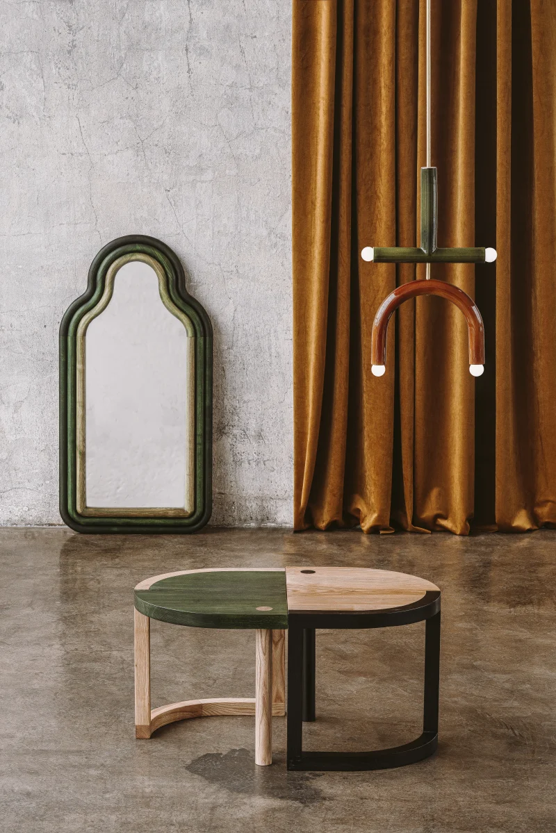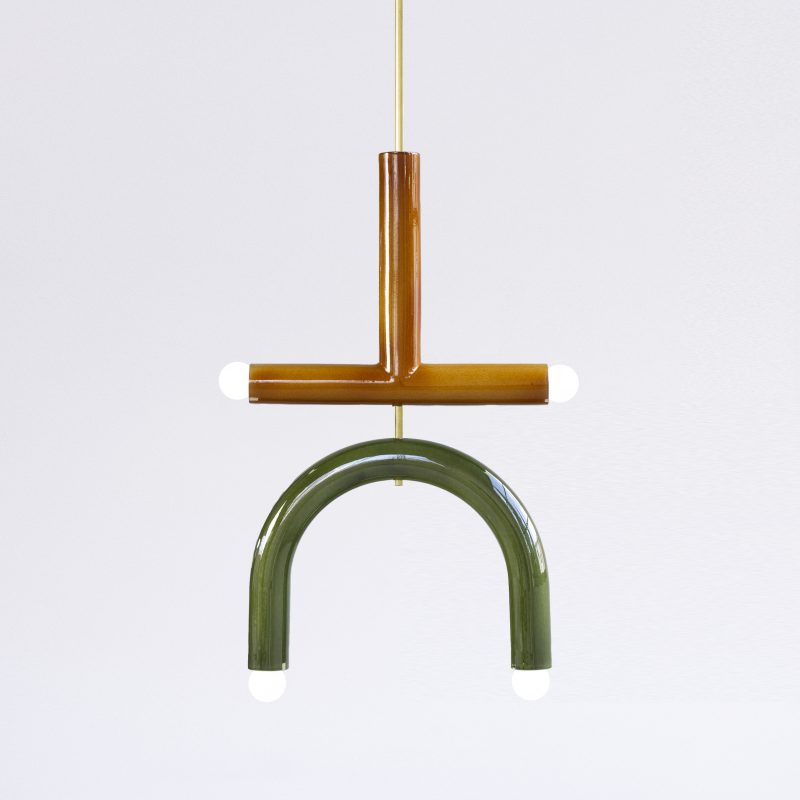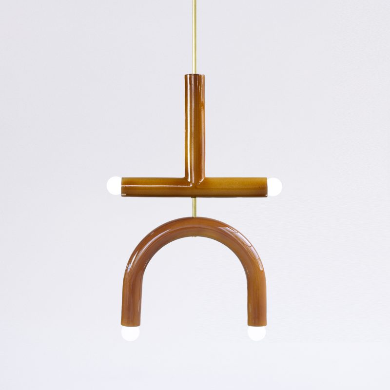 The hand crafted process of glazing ceramics gives the collection a truly unique character. It is finished with brass elements.