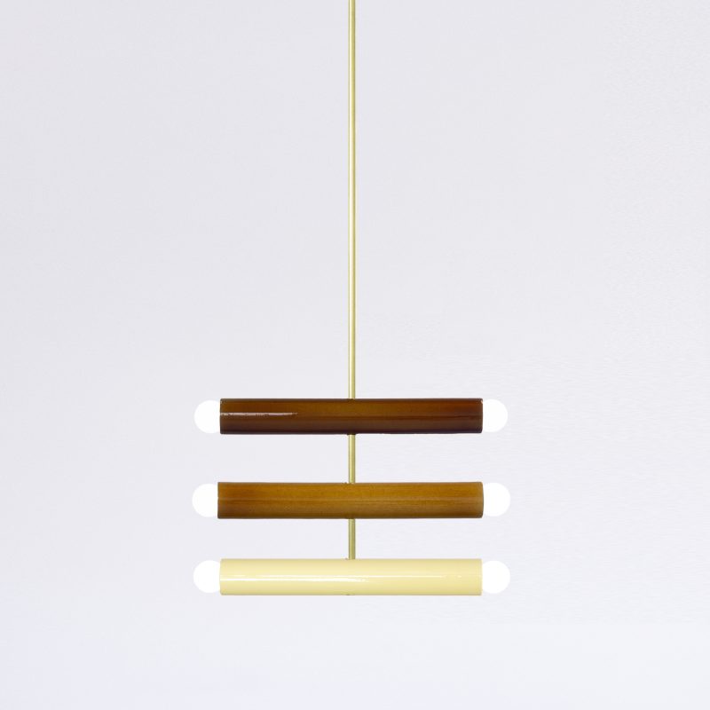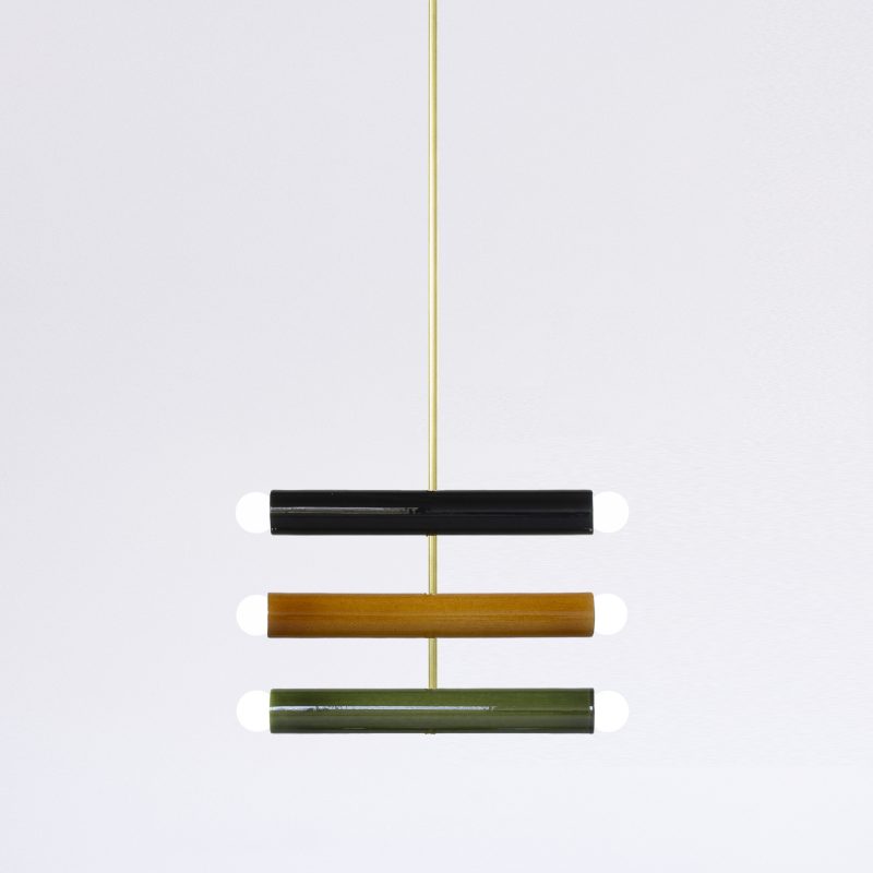 The hand crafted process of glazing ceramics gives the collection a truly unique character. It is finished with brass elements.