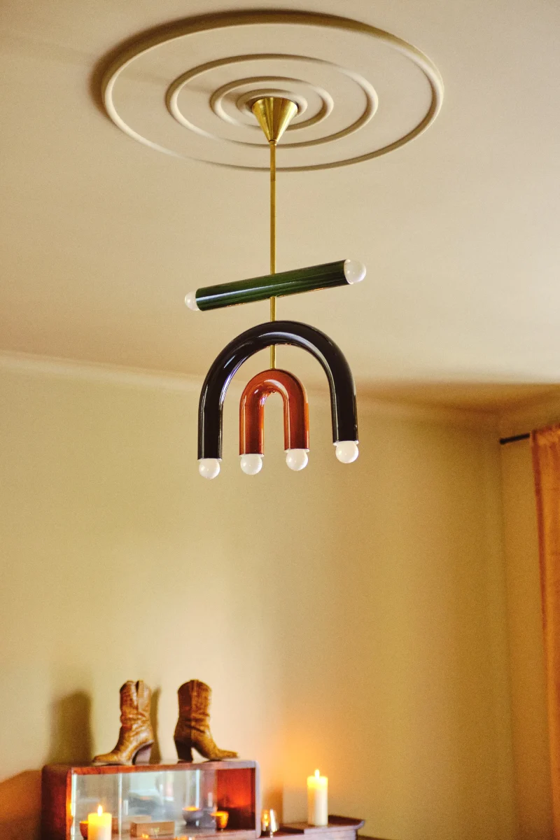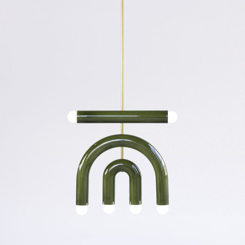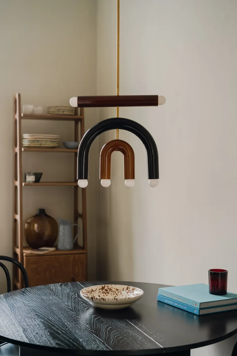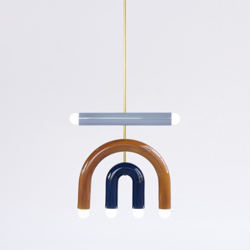The hand crafted process of glazing ceramics gives the collection a truly unique character. It is finished with brass elements.