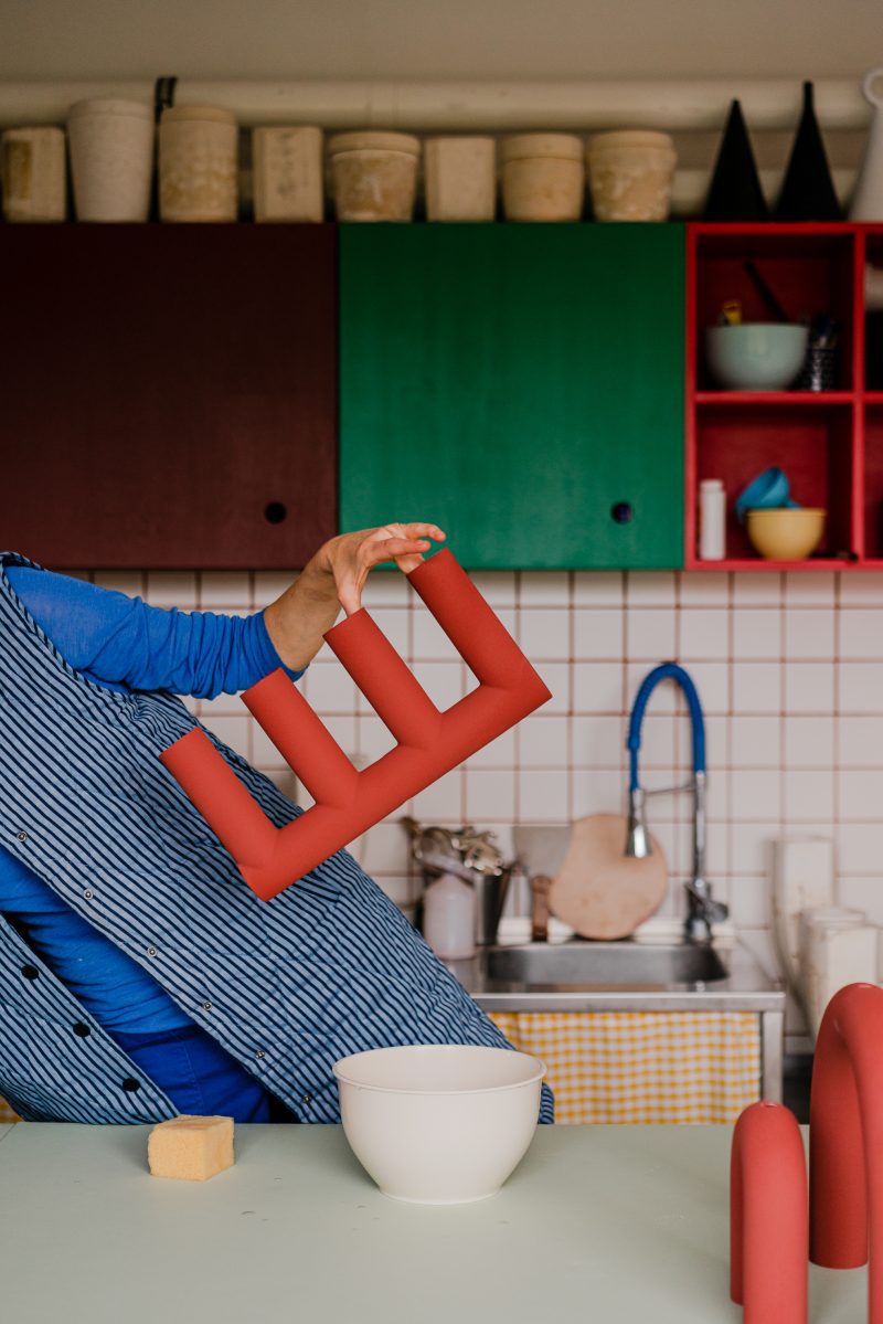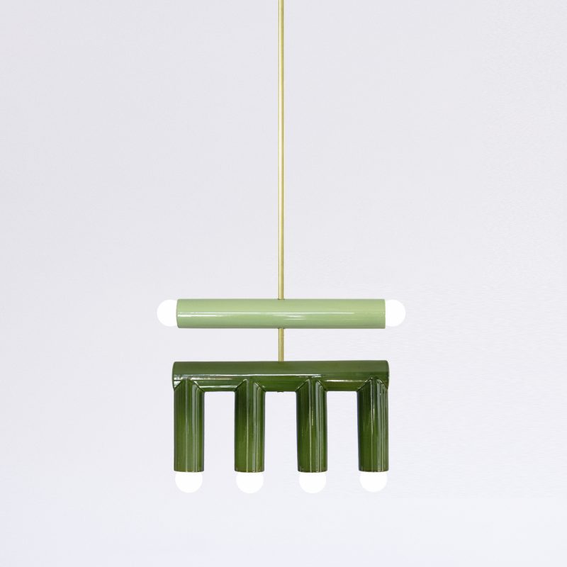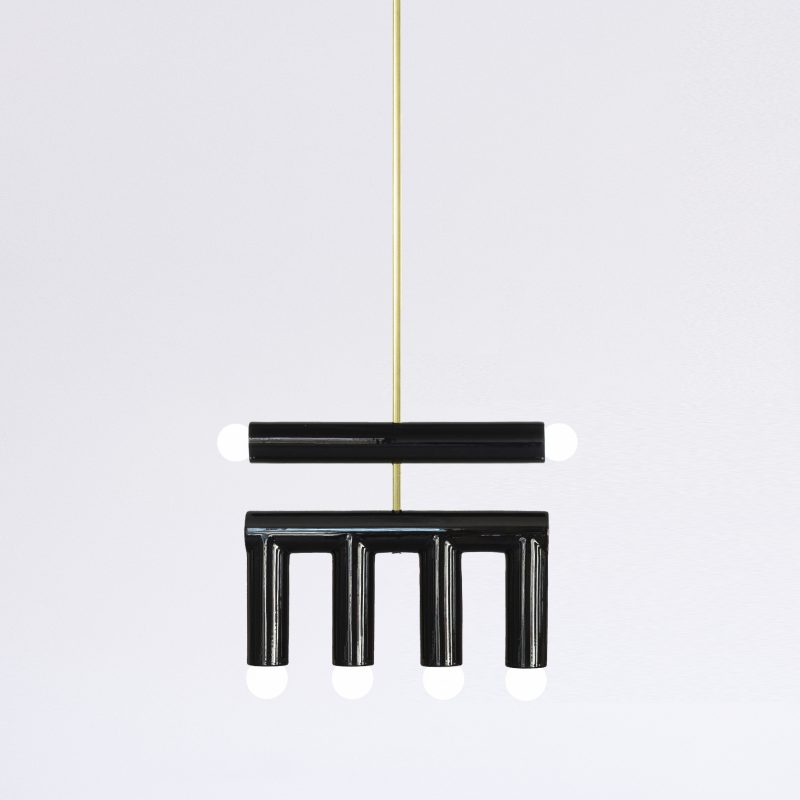 The hand crafted process of glazing ceramics gives the collection a truly unique character. It is finished with brass elements.