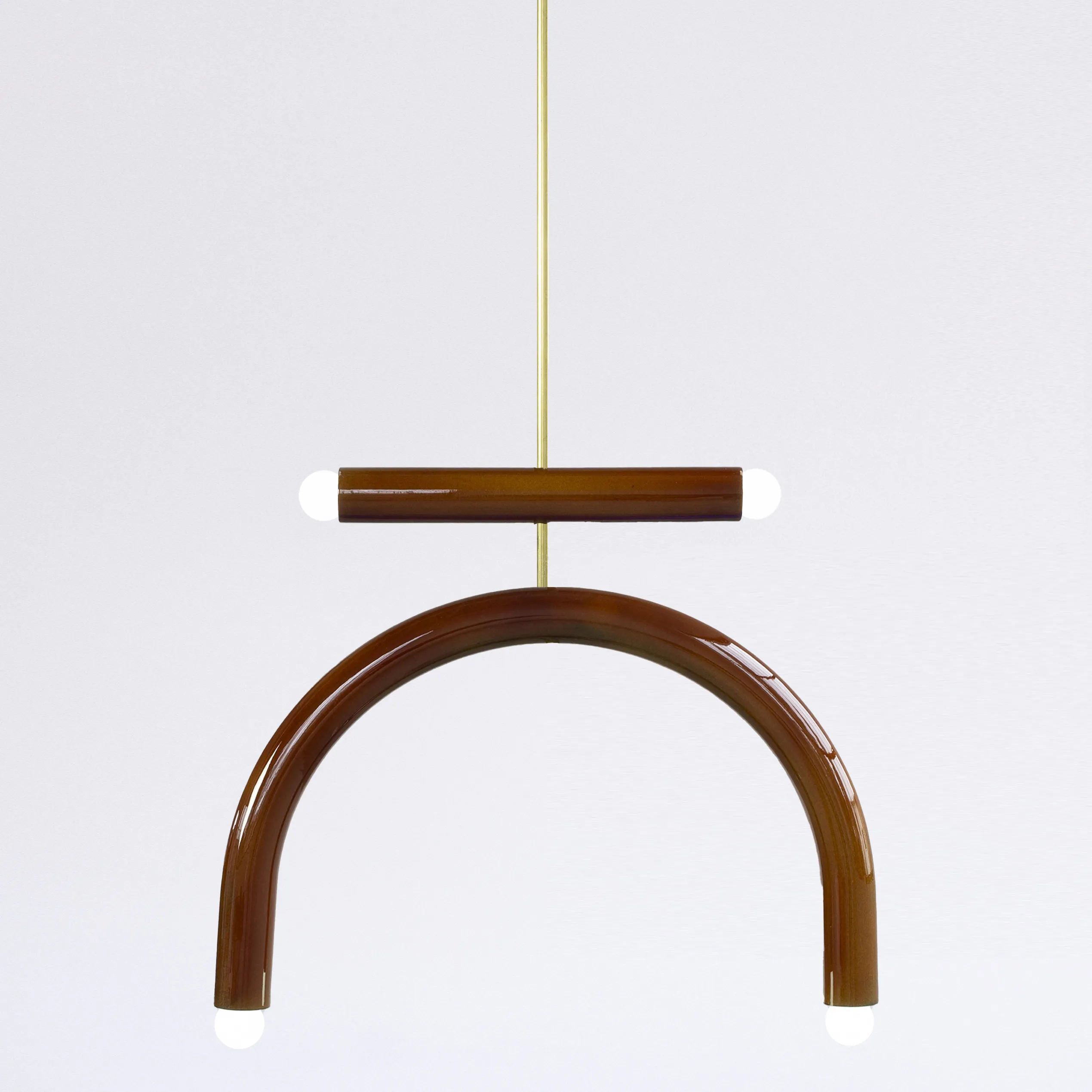 The hand crafted process of glazing ceramics gives the collection a truly unique character. It is finished with brass elements.