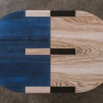The table is part of TRN collection. Three dimensional objects inspired by Tarasin painting have a simple calligraphic form so they can play and talk together as if they were letters from a non-existent alphabet.