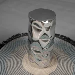 The Tronco Drinks Table distills the core language of the Tronco series into a single sculptural pillar: an intimate, standalone object that brings the expressive surface of hydroformed stainless steel into close proximity. Conceived as both a functional side table and a collectible design piece, its form draws from the natural geometry of tree trunks, translating organic verticality into a reflective, engineered material presence. The cylindrical volume is shaped using controlled hydraulic pressure and refined by hand, resulting in a surface marked by folds, creases and softened vertices that speak to the memory of force. Each indentation and ridge becomes an abstracted echo of motion, suspended in metal.