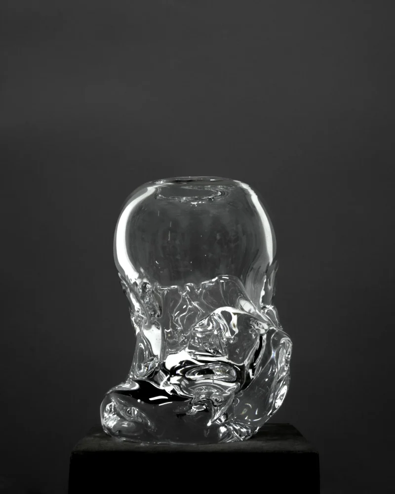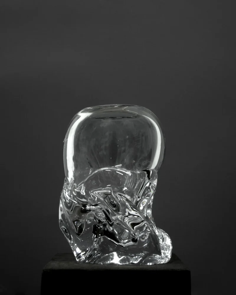 This vase is born from an innovative and experimental process in glassblowing. By incorporating natural materials like stones and ceramics, the team achieves a rough, organic shape, giving the vase a distinctive texture and form that sets it apart from traditional glassware.