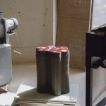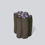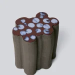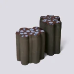 Slō’s Trunk Tables in Ice & Red Poison Frog come as a pair. They are hand extruded, black stoneware ceramic side tables that are one-off vessels. Slō uses multiple layers of glaze to create the blue pattern on the top of each piece allowing for a striking contrast between the blue spots and their regal red base. The body of the table has been left unglazed, as with all of Slō’s work, each piece is unique in its own way owing to the method of making and glazing. The studio allows each table to emerge from the extruder with as little input as possible, to encourage them to form their own unique shape.