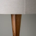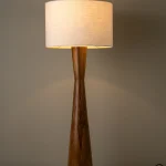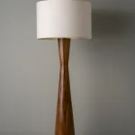 Turned parota base with matte finish and sturdy lampshade with fiberglass and linen.