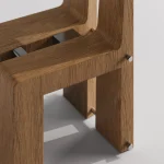 Made from solid natural oak, each piece is meticulously crafted to preserve the warmth and authentic texture of the material. A natural lacquer has been applied to preserve and enhance the timeless appeal of the wood. The metal connection details add a modern touch, emphasising the robustness of the structure.