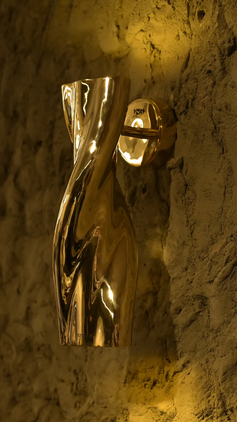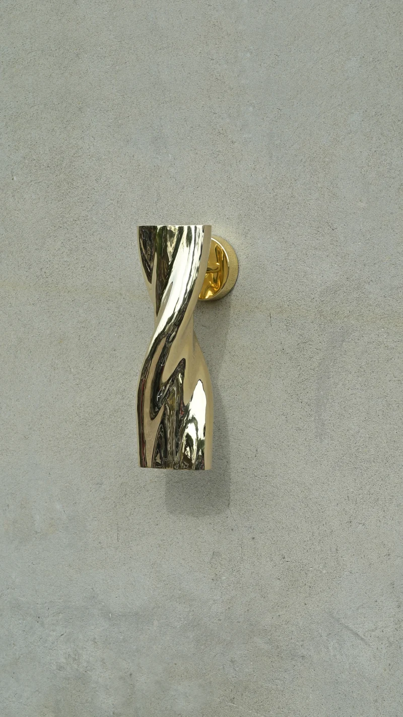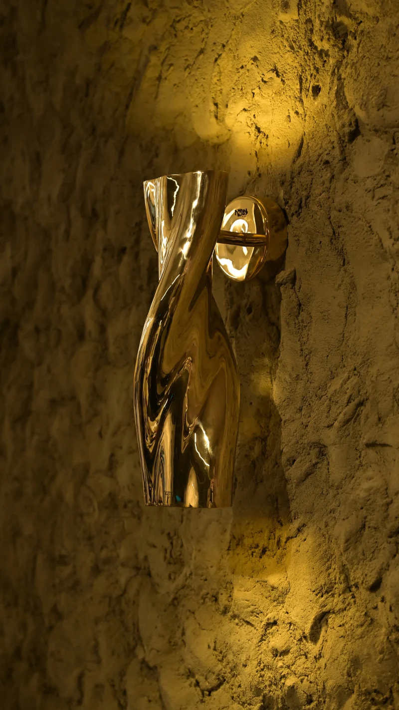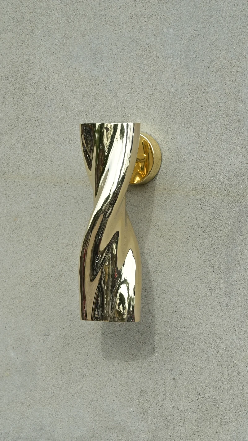 Finished with lustrous natural brass polish and accents that channel the fluid allure of molten gold, our Twist Wall Lamp exudes a beacon of refined luxury. Each twist and turn in this captures the essence of nature’s own design, while the golden hues evoke a sense of timeless beauty and grace. As the sun sets and the room is bathed in the soft glow of our designer wall lamp, immerse yourself in its radiant embrace. Let its poetic presence illuminate your home, inspiring moments of quiet contemplation in the twilight hours.