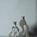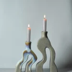 The “Two Legs” Candle Holders exude a blend of whimsy and elegance. These unique pieces playfully hint at either human or animal feet, lending a quirky touch to their modern and minimalist aesthetic. Crafted as a set of two, the larger holder stands at 26.5 cm in height, with a width of 13.5 cm and depth of 5.5 cm. Its counterpart, slightly more petite, measures 21 cm in height, 12 cm in width, and retains the same depth of 5.5 cm. Meticulously hand-built, these candle holders are fashioned from premium stoneware, ensuring both durability and timeless charm.