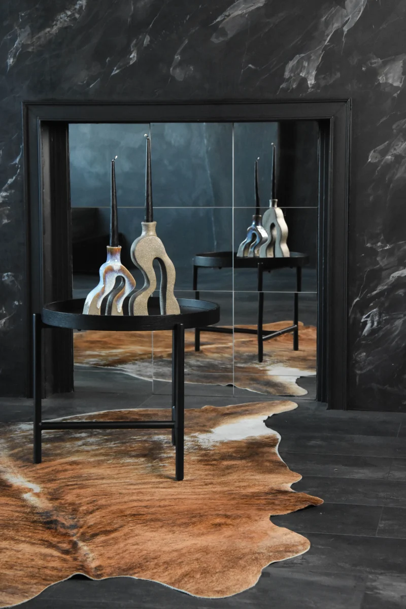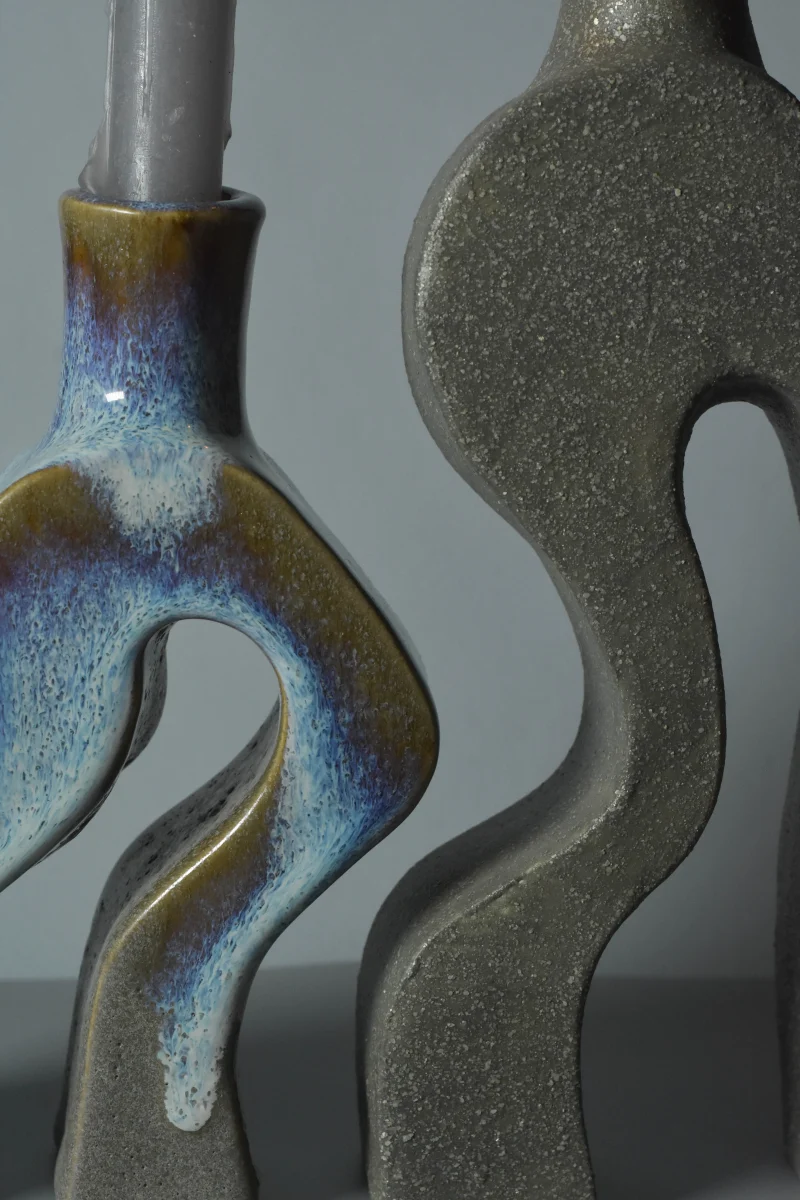 The “Two Legs” Candle Holders exude a blend of whimsy and elegance. These unique pieces playfully hint at either human or animal feet, lending a quirky touch to their modern and minimalist aesthetic. Crafted as a set of two, the larger holder stands at 26.5 cm in height, with a width of 13.5 cm and depth of 5.5 cm. Its counterpart, slightly more petite, measures 21 cm in height, 12 cm in width, and retains the same depth of 5.5 cm. Meticulously hand-built, these candle holders are fashioned from premium stoneware, ensuring both durability and timeless charm.
