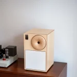 Each cabinet is meticulously crafted from rigid Baltic birch, finished with maple veneer and a natural polyurethane topcoat for protection. The horn, carved from solid maple hardwood, now features a broader profile ensuring consistent, room-filling sound with natural balance. Five interchangeable grille options (white, black, red, grey, and brown) allow the speaker to adapt to a broad range of interiors.