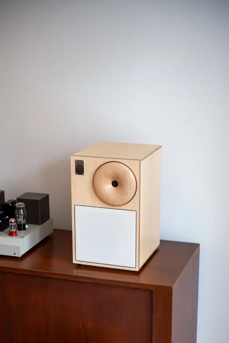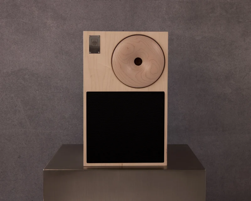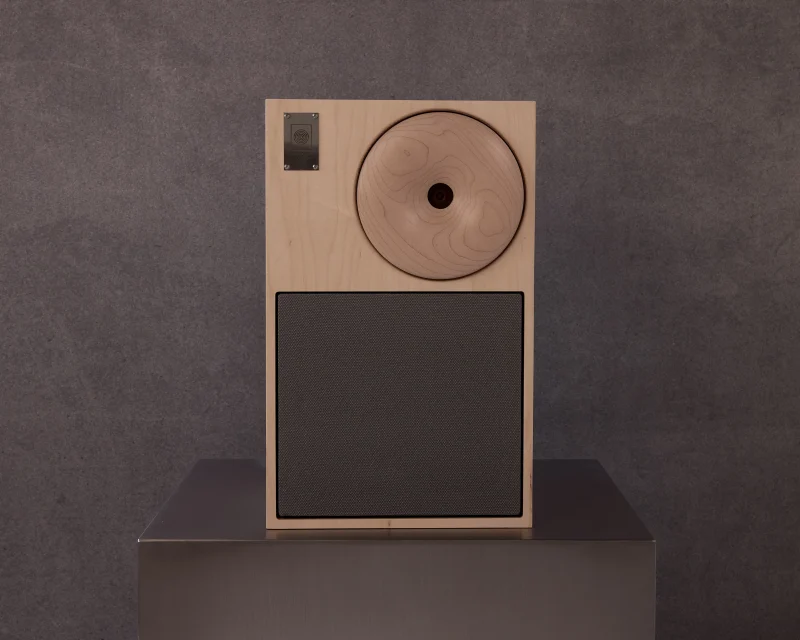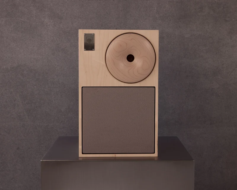 Each cabinet is meticulously crafted from rigid Baltic birch, finished with maple veneer and a natural polyurethane topcoat for protection. The horn, carved from solid maple hardwood, now features a broader profile ensuring consistent, room-filling sound with natural balance. Five interchangeable grille options (white, black, red, grey, and brown) allow the speaker to adapt to a broad range of interiors.