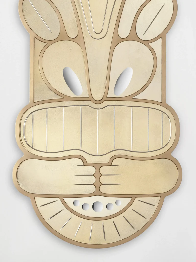 “UNDO” is a golden mirror, handmade and engraved in Venice. The wood structure is gold-leaf coated.