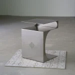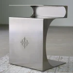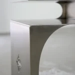 Undress House Side Table is a minimalist piece that reflects the initial design concept of Undress House. Crafted from stainless steel with a sleek and unembellished form, this table features clean finishes and graceful curves. The soft curvature on the sides adds a sense of fluidity to the cold, rigid texture of the metal, achieving a harmonious balance between form and material.