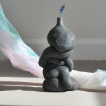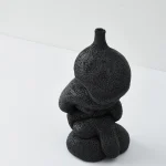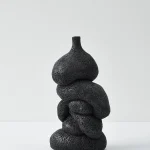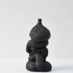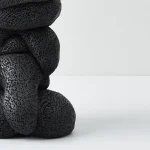 This black stoneware sculpture captures the essence of molten stone, seemingly frozen amid a dynamic transformation. Its organic, compact form exudes a sense of fluidity and motion, as if caught between states of solid and liquid. The playful contours and textured surface reflect the artist’s intuitive and spontaneous creative process, resulting in a raw and deliberate piece.