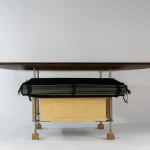 The coffee table is covered in a wenge wood veneer that is expertly crafted and finished to a high standard, making it a durable and long-lasting piece of furniture. Its unique design and use of high-quality materials make it a visually captivating and eye-catching piece that will instantly elevate any living room or office space.