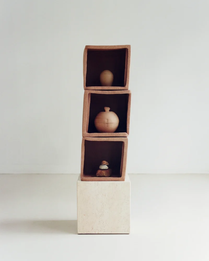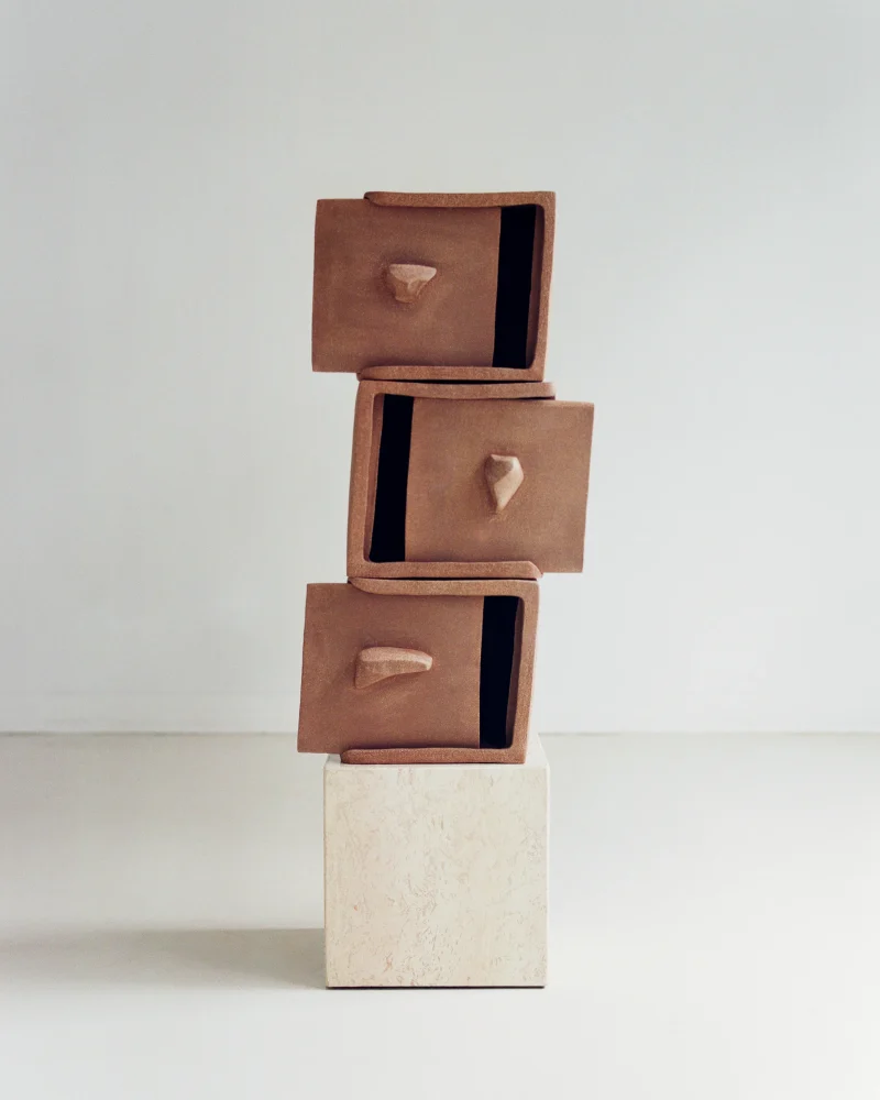 Blurring the line between art and design, UNITS are sculptural ceramic storage solutions designed with the intention to hold everyday objects. Spacious enough to hold multiple objects, each abstract and biomorphic unit is adorned with a distinct sculptural handle, adding a unique touch to its organic design. Each one-of-a-kind edition is carefully sculpted, crafted and finished by hand using mixed techniques.