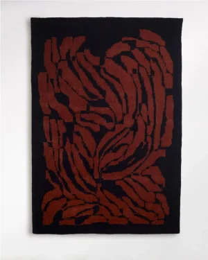 Every decision in the process is intentional, particularly when it comes to materials. The artist uses 100% New Zealand wool for its natural strength and softness and has replaced the standard polyester backing with organic hemp, a fast-growing, low-impact, and biodegradable alternative. This choice reflects a commitment to responsible making. Each piece is handcrafted, tufted, and stitched slowly and carefully, guided by the belief that process carries as much meaning as outcome.