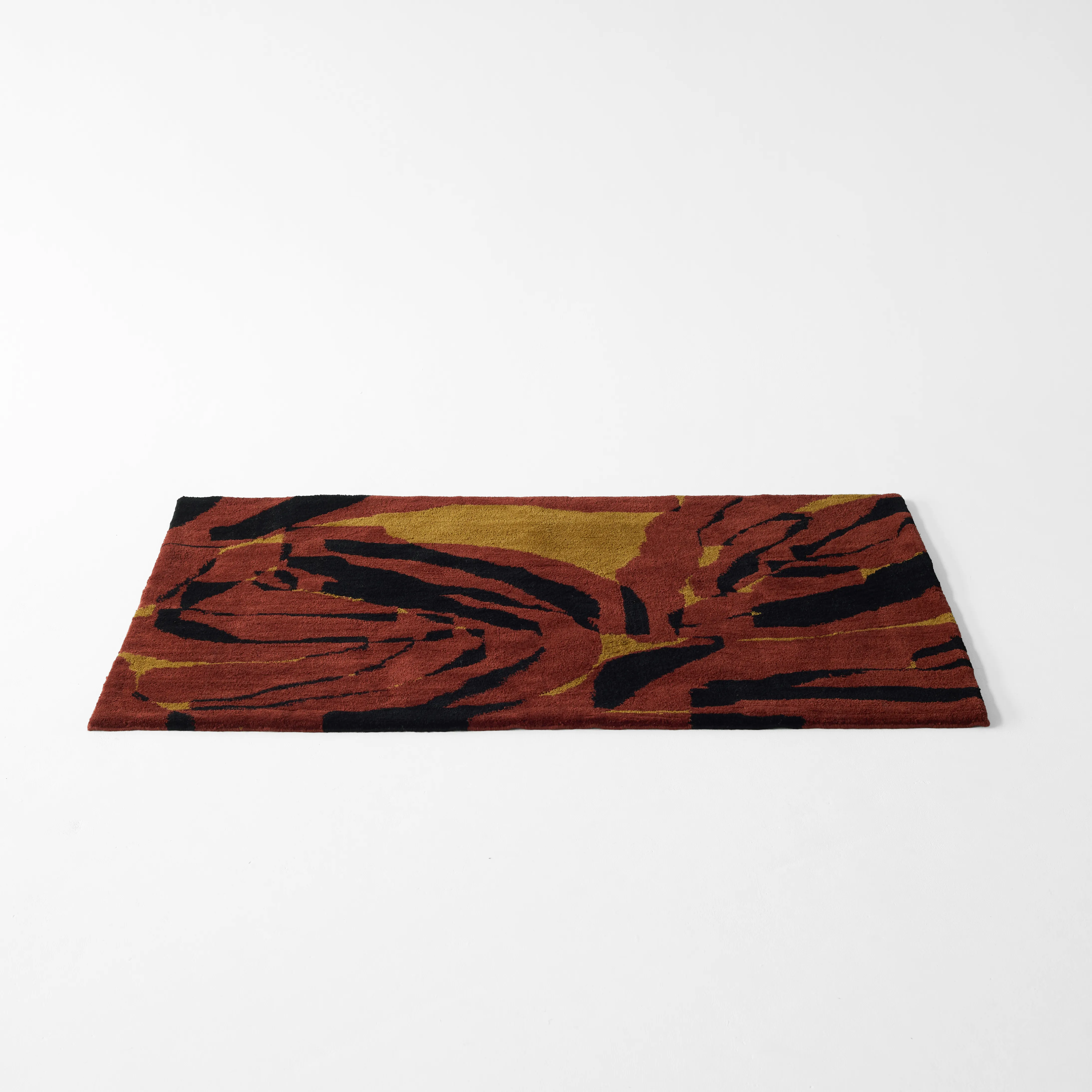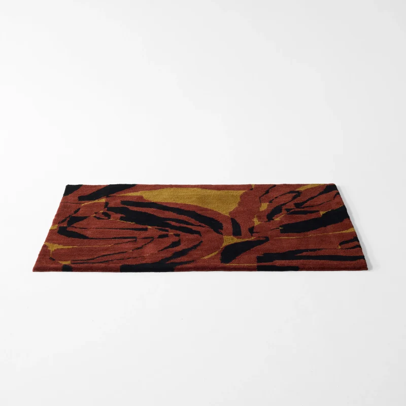 Every decision in the process is intentional, particularly when it comes to materials. The artist uses 100% New Zealand wool for its natural strength and softness and has replaced the standard polyester backing with organic hemp, a fast-growing, low-impact, and biodegradable alternative. This choice reflects a commitment to responsible making. Each piece is handcrafted, tufted, and stitched slowly and carefully, guided by the belief that process carries as much meaning as outcome.