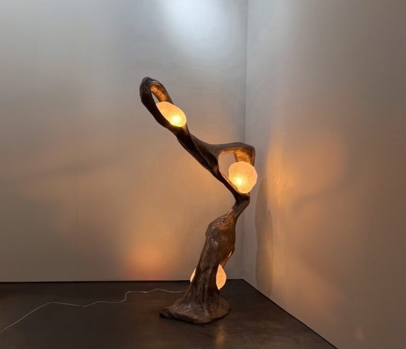 The result is a form that feels almost unstable caught between holding and unraveling. What appears to have weight is often hollow; what looks delicate holds more strength than expected. The bronze patina gives the illusion of solidity, but underneath is a structure made from fragments.