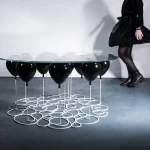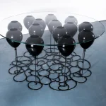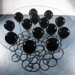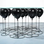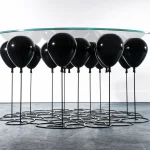 Adapted from the original UP Balloon Coffee Table, a playful trompe l’oeil with black balloons impressing the illusion of a levitating glass tabletop.
