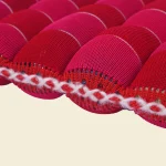 In the spirit of reusing and upcycling, this soft and comfortable cushion uses material waste as an aesthetic and functional tool. Made from a semi-transparent knitted tube that is filled with mixed production waste, this cushion becomes a sustainable and playful sitting solution.