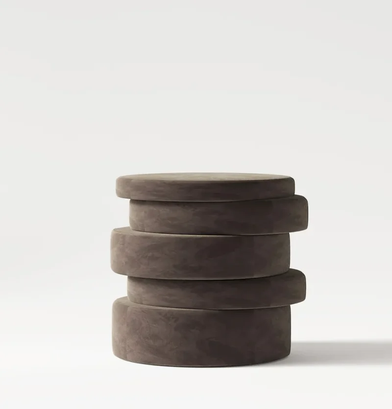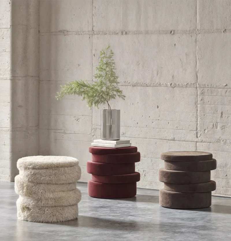The Ups Pouf is an elegant combination of five different cylinders at different heights. Its refined design blends seamlessly with modern furniture aesthetics and boasts a sculptural presence. Its soft, textured fabric provides a comfortable seating experience, while its durable material construction promises longevity.