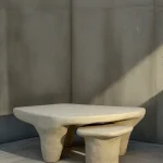 Art furniture Coffee table Collectible Design Contemporary furniture Designer table Experimental Design Functional sculpture hand sculpted Handmade Indigenous Design material exploration minimalist design Modern furniture Neolithic Nesting table Organic form raw aesthetics Sculptural coffee table Sculptural table statement table studio made tactile surface Tropical Brutalism v003 table