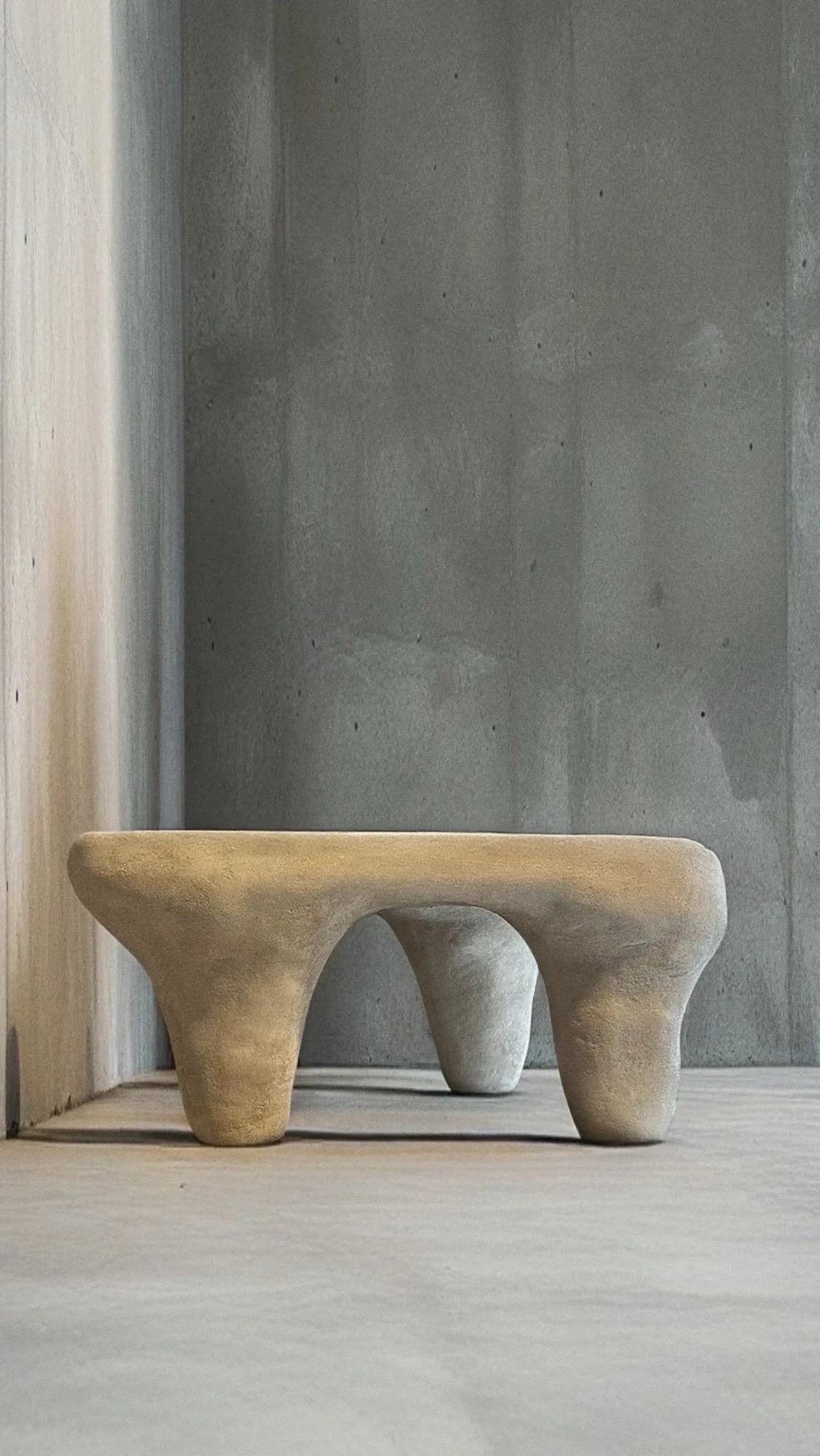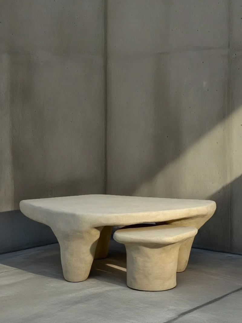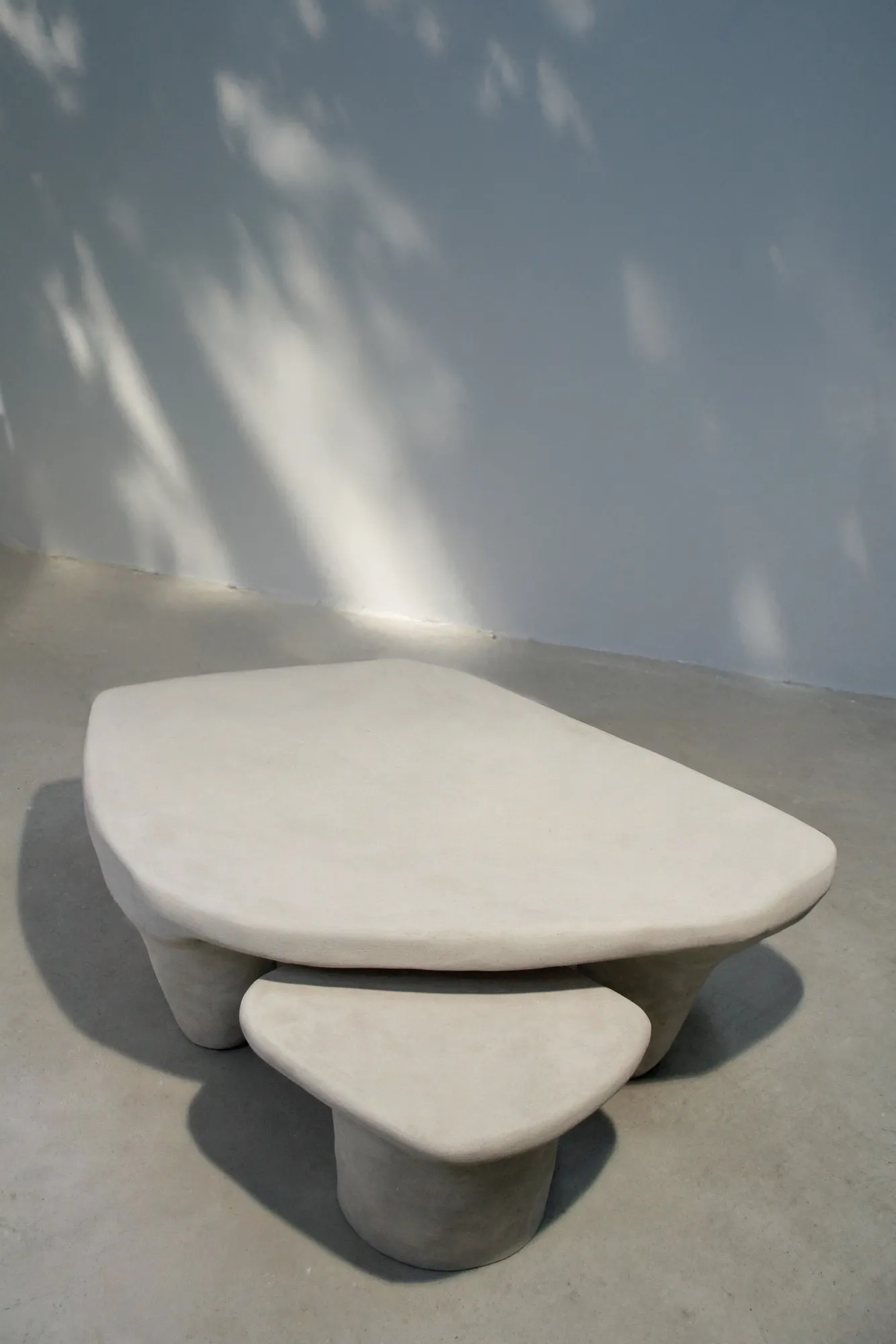 Art furniture Coffee table Collectible Design Contemporary furniture Designer table Experimental Design Functional sculpture hand sculpted Handmade Indigenous Design material exploration minimalist design Modern furniture Neolithic Nesting table Organic form raw aesthetics Sculptural coffee table Sculptural table statement table studio made tactile surface Tropical Brutalism v003 table
