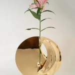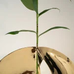 This vase features a small water tank and is not coated (coating available upon request). The surfaces will develop a patina over time.