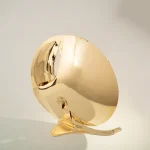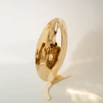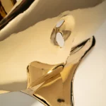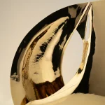 In the process of creating hand-shaped vessels, Carl Auböck V began designing the largest and most deconstructed vase yet produced by AUBÖCK. This large, full-brass sculpture creates striking and brilliant light refractions, achieved through the hand-shrinking of its panels.