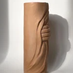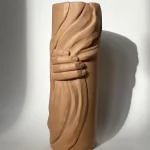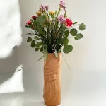 Hand-build vase, made from pigmented clay and matte finish. The inside is covered with clear glaze, so fresh flowers can be put inside.