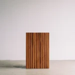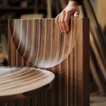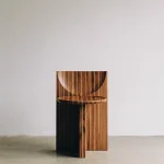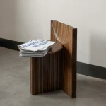 A design masterpiece, crafted from repurposed solid walnut and oak wood into a simple, chunky geometric form. Vaga Chair features precise patchwork craftsmanship, elevating the uniqueness of natural timber. The design blends traditional woodworking techniques with modern manufacturing processes, resulting in a thoughtfully designed, one-of-a-kind piece of furniture that celebrates Portugal’s rich heritage of woodworking. Whether making a statement as a standalone centerpiece or enhancing your living space, the chair blends aesthetics and craftsmanship, transcending functionality to inspire contemplation on the art of creation.