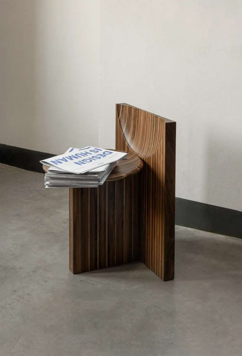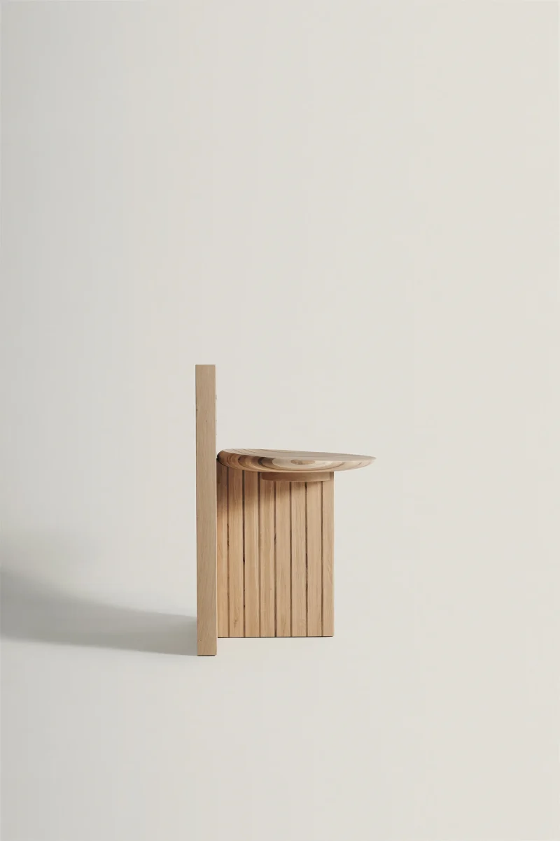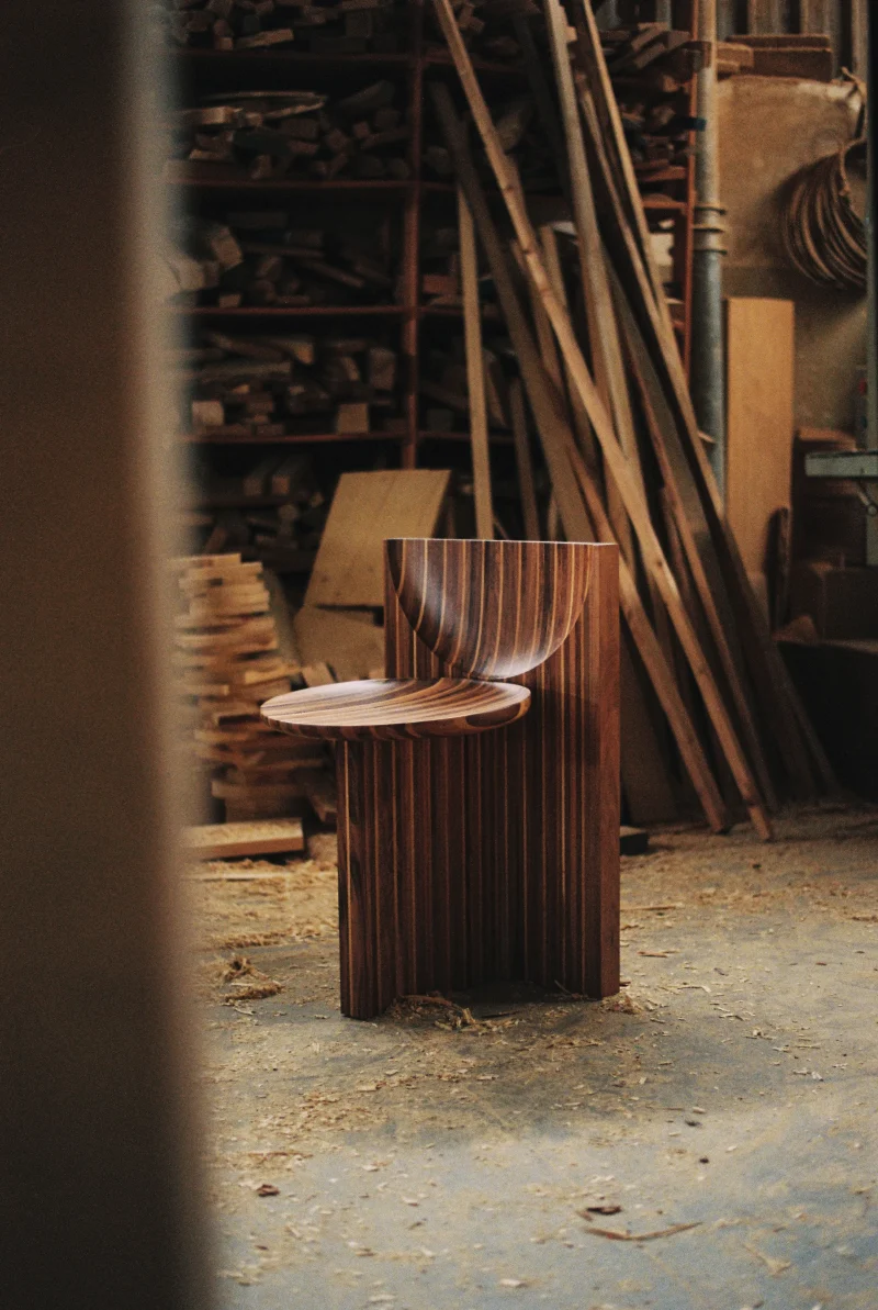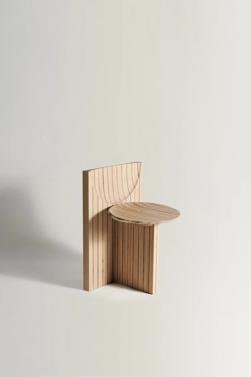 A design masterpiece, crafted from repurposed solid walnut and oak wood into a simple, chunky geometric form. Vaga Chair features precise patchwork craftsmanship, elevating the uniqueness of natural timber. The design blends traditional woodworking techniques with modern manufacturing processes, resulting in a thoughtfully designed, one-of-a-kind piece of furniture that celebrates Portugal’s rich heritage of woodworking. Whether making a statement as a standalone centerpiece or enhancing your living space, the chair blends aesthetics and craftsmanship, transcending functionality to inspire contemplation on the art of creation.