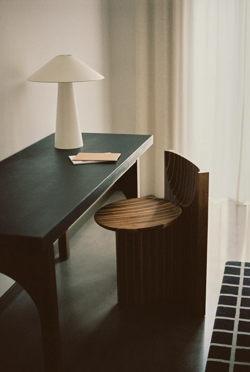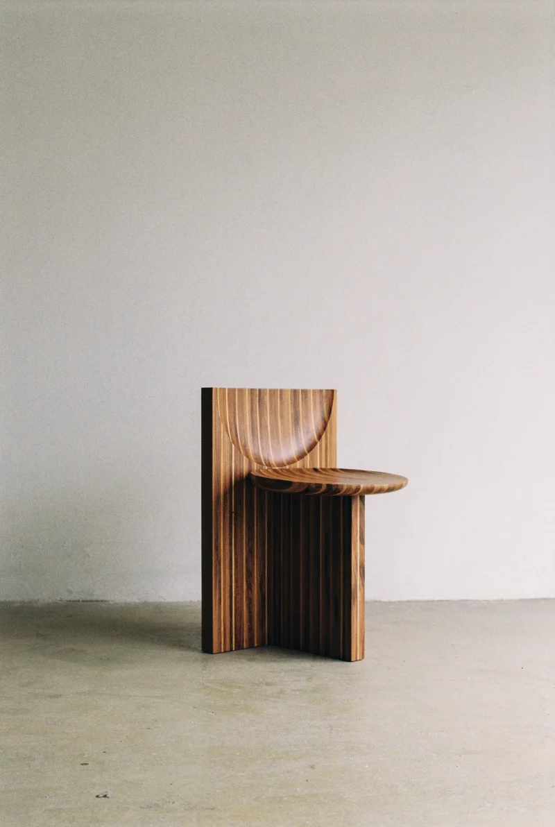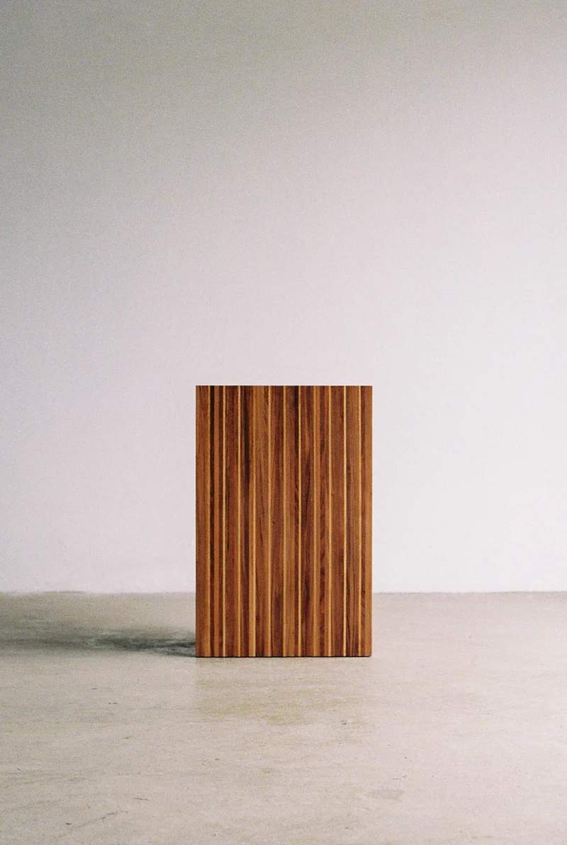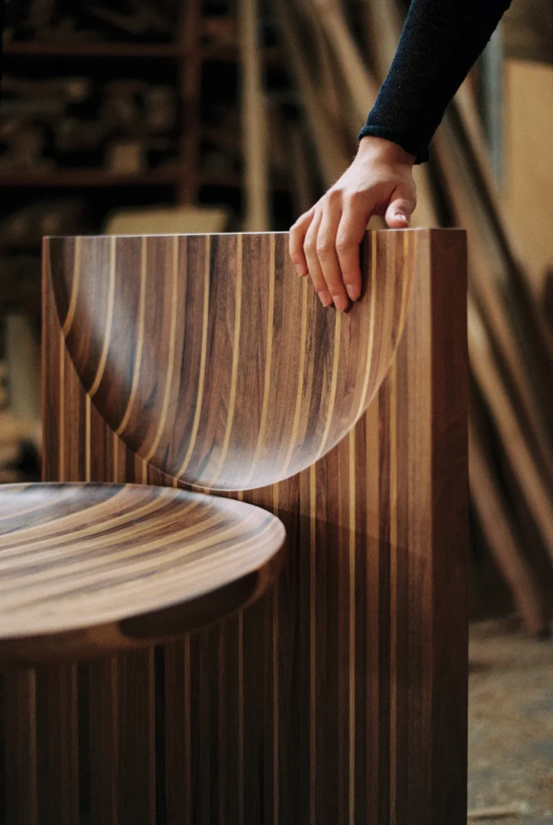 A design masterpiece, crafted from repurposed solid walnut and oak wood into a simple, chunky geometric form. Vaga Chair features precise patchwork craftsmanship, elevating the uniqueness of natural timber. The design blends traditional woodworking techniques with modern manufacturing processes, resulting in a thoughtfully designed, one-of-a-kind piece of furniture that celebrates Portugal’s rich heritage of woodworking. Whether making a statement as a standalone centerpiece or enhancing your living space, the chair blends aesthetics and craftsmanship, transcending functionality to inspire contemplation on the art of creation.