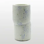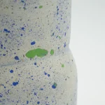 This vase was casted in a light grey terrazzo, it was filled with green and blue plaster and then hand sanded to give it the finish of a smooth natural stone.