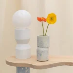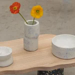 This piece is from “Intemporal” by Soledre, which acts as a permanent collection, it is characterized by the combination of simple shapes casted in concrete and terrazzo.