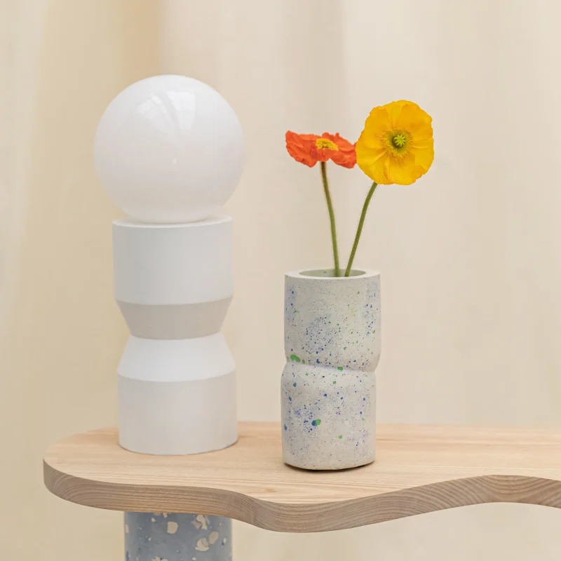 This piece is from “Intemporal” by Soledre, which acts as a permanent collection, it is characterized by the combination of simple shapes casted in concrete and terrazzo.