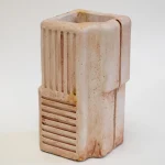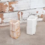 The objects and furniture in the collection are artifacts of a technological world running on auto-pilot. A specially formulated plaster is the primary material, complemented by terrazzo, wood elements, and unique stoneware pieces.