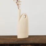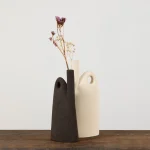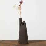 Sculptural ceramic vase by England-based designer, melo clay, handmade from black vulcanic clay. It is watertight and can be used as a vase or a water jug as well as a decor item for your home.
